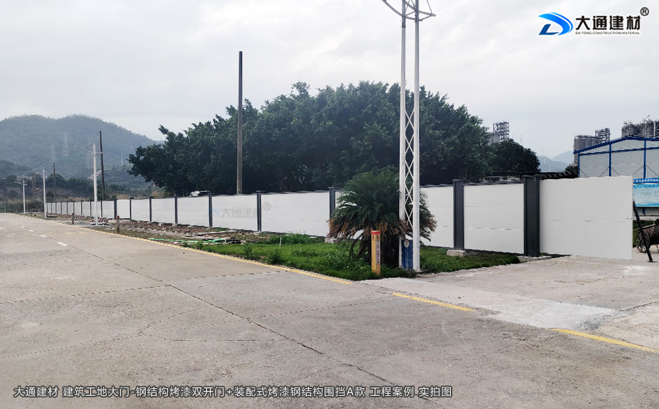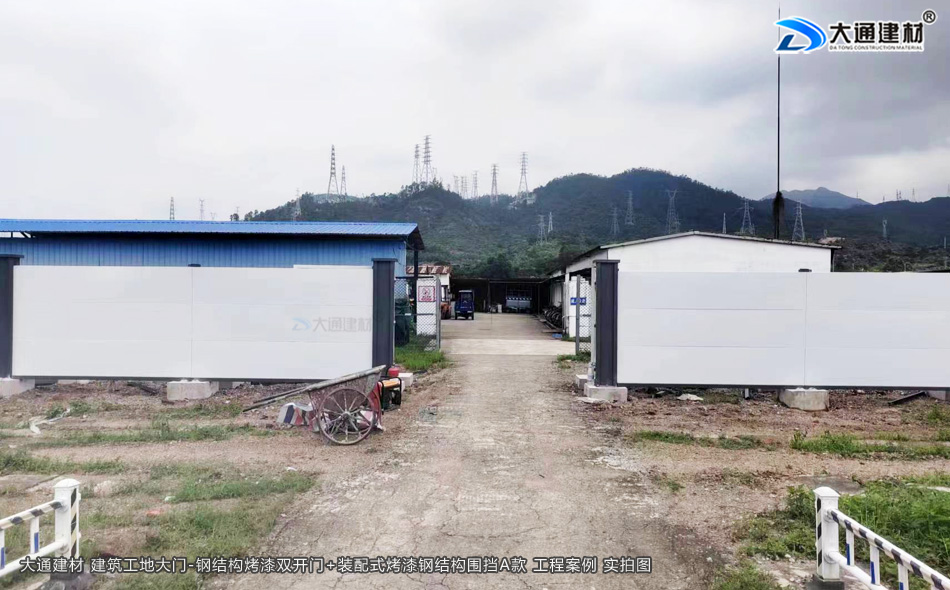 建筑工地大門-施工大門-鋼結構烤漆雙開門+裝配式鋼結構烤漆圍擋A款應于到深圳市建筑工程項目