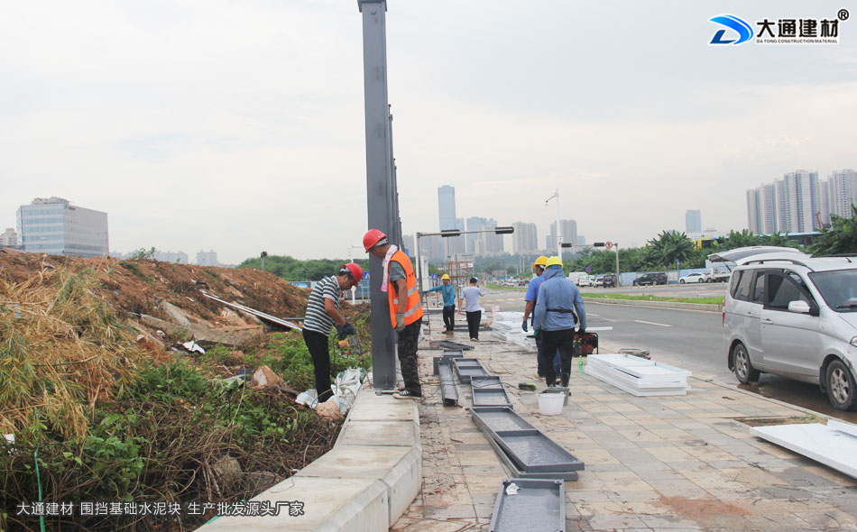 深圳市大通建材有限公司生產(chǎn)的圍擋基礎(chǔ)塊配合鋼結(jié)構(gòu)圍擋半龍骨定制a款應(yīng)用于廣東省東莞市南城街道的建筑工地項(xiàng)目施工中,以下展示 大通建材圍擋基礎(chǔ)與鋼結(jié)構(gòu)圍擋安裝過程