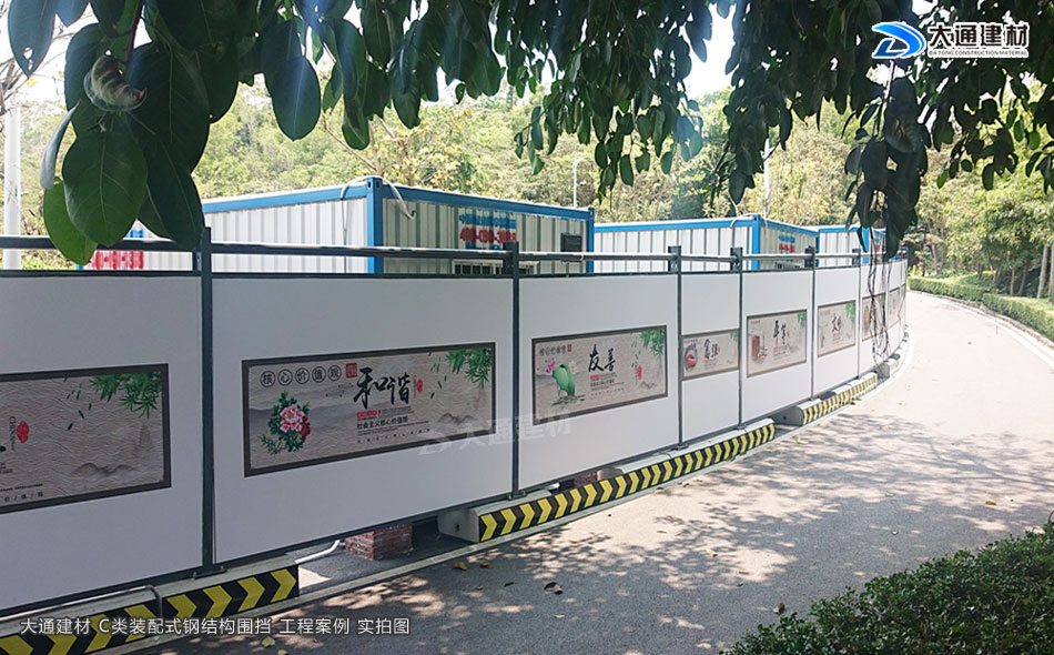 深圳市大通建材圍擋C款符合深圳市政新標(biāo)準(zhǔn),是一款裝配式圍擋,采用鋼結(jié)構(gòu)設(shè)計(jì),由鍍鋅墻板、立柱、上下橫梁等配件組成,拆裝方便、美觀環(huán)保、安全穩(wěn)固,適合深圳市政道路、房地產(chǎn)建設(shè)、小區(qū)改造施工等工程使用。