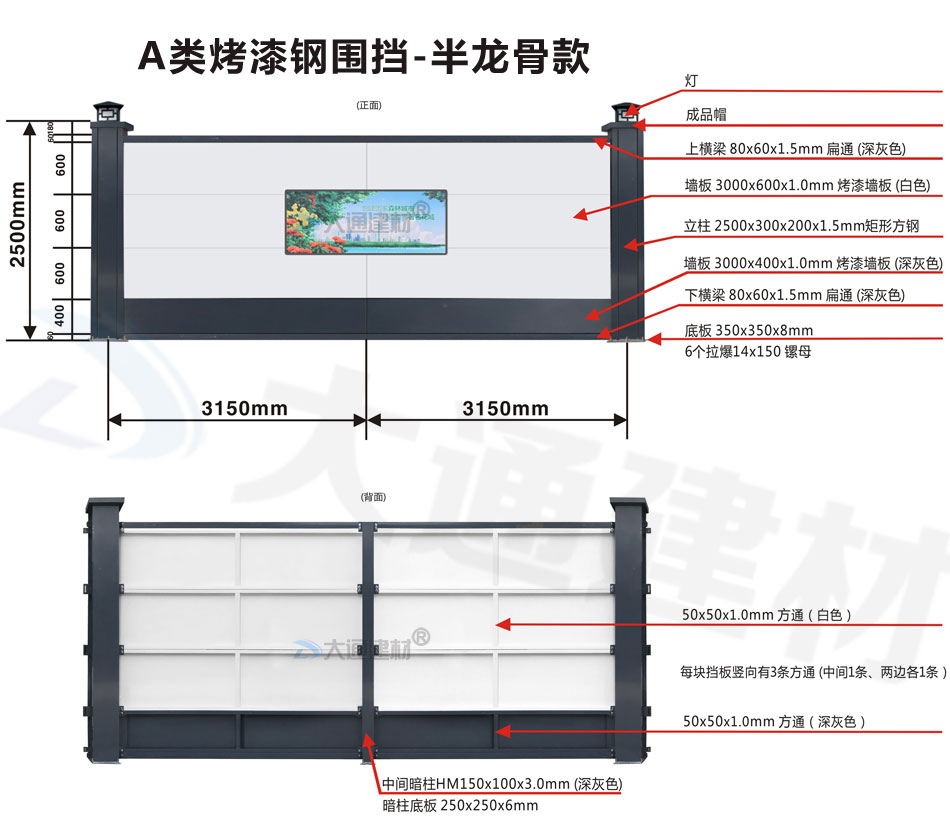 大通建材A類烤漆鋼結(jié)構(gòu)圍擋-半龍骨款(上圖為正面圖、下圖為背面圖)