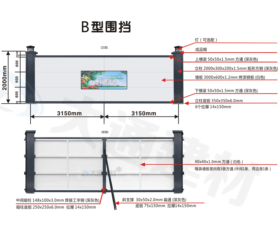 當(dāng)前位置:首頁(yè)>產(chǎn)品中心>鋼圍擋圍擋>B型圍擋-2米高新型鋼圍擋-B型圍擋全龍骨款(標(biāo)準(zhǔn)款)