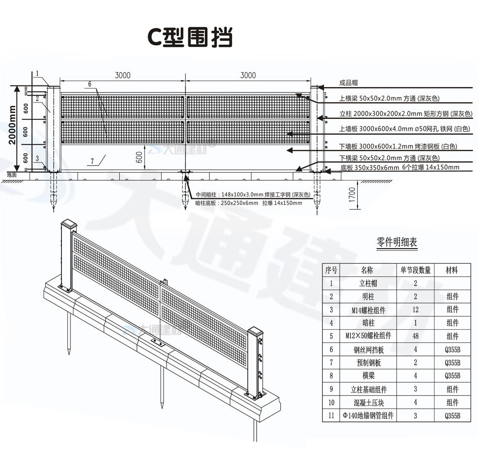 深圳市大通建生產的C型圍擋采用鋼結構設計,更安全穩固,抗風能力更強,大多數能抵抗10級以上的風力,適用于市政建設施工、房地產項目施工、高架橋施工、地地鐵項目施工、路橋維護施工、隧道施工、立面改造施工、廠房隔斷施工等各種項目工程,一款好的圍擋能為工地施工安全保駕護航。大通為各項目工程單位提供圍擋生產定制、施工安裝等包工包料的服務,了解更多“大通C型圍擋”詳情 請致電13826562448 梁先生