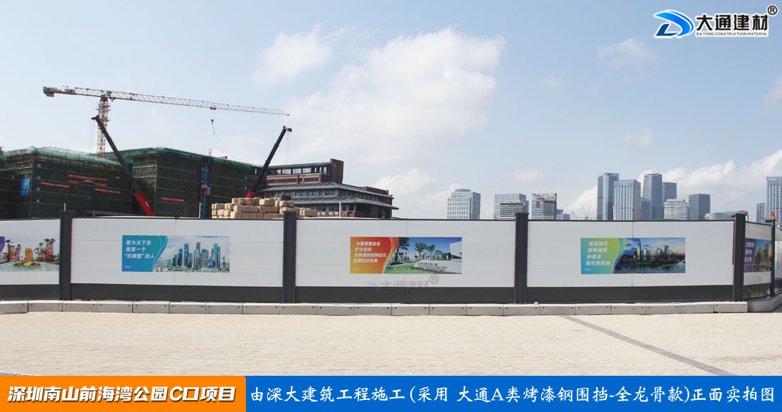 大通建材A類烤漆鋼圍擋-全龍骨款 具有“美觀環(huán)保、抗風(fēng)能力強(qiáng),安全穩(wěn)固、無(wú)損耗、無(wú)建筑垃圾,拆裝快捷、可多次重復(fù)使用,可疊放、便于運(yùn)輸和儲(chǔ)存,外觀具有美化城市環(huán)境”等優(yōu)點(diǎn),適合房地產(chǎn)修建、市政工程、交通道路等工程建設(shè)項(xiàng)目現(xiàn)場(chǎng)使用。