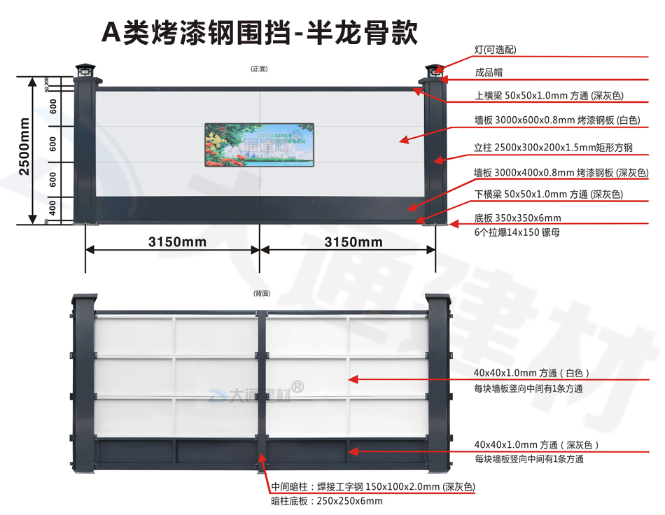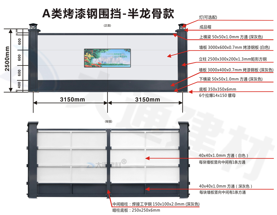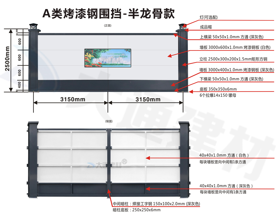 A類烤漆裝配式鋼圍擋-半龍骨款