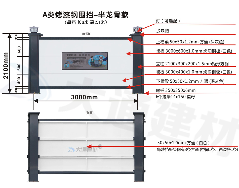 大通建材專業生產批發A類鋼結構烤漆圍擋 廠家直接銷售 有現貨 價格便宜 下單即可安裝送貨安裝 也可根據客戶需求進行定制化生產